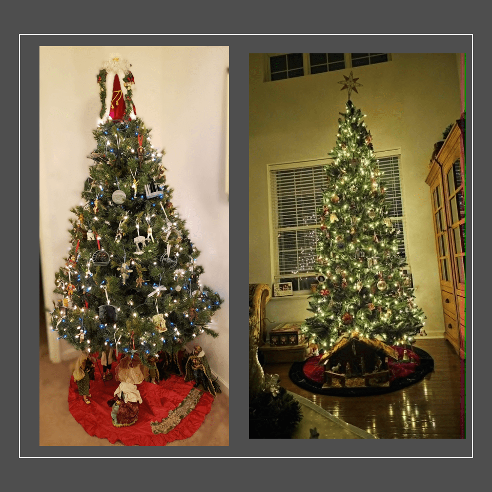 For the past 28 years, ever since he became a father, we have purchased every single Star Wars ornament Hallmark released. Every. Year. Without fail. This tree takes three hours to set up, from lights to tree topper, and he is thrilled by this fact. It lives in a less prominent location, because… well… it’s Star Wars. But he is deeply proud of it and entirely unbothered by how much effort it requires.
